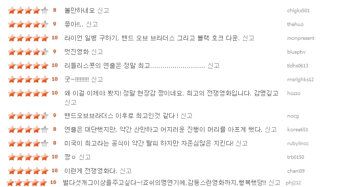 전쟁영화 좋아하시는 분들 꽤나있으신데요