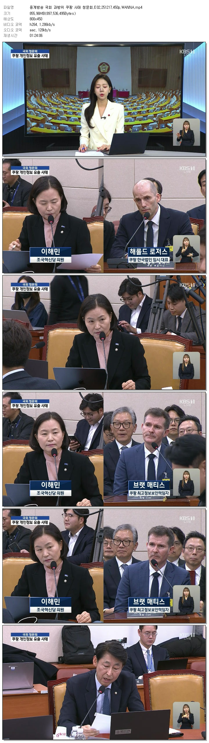 중계방송 국회 과방위 쿠팡 사태 청문회.E02.251217.450p.WANNA 다시보기 토렌트