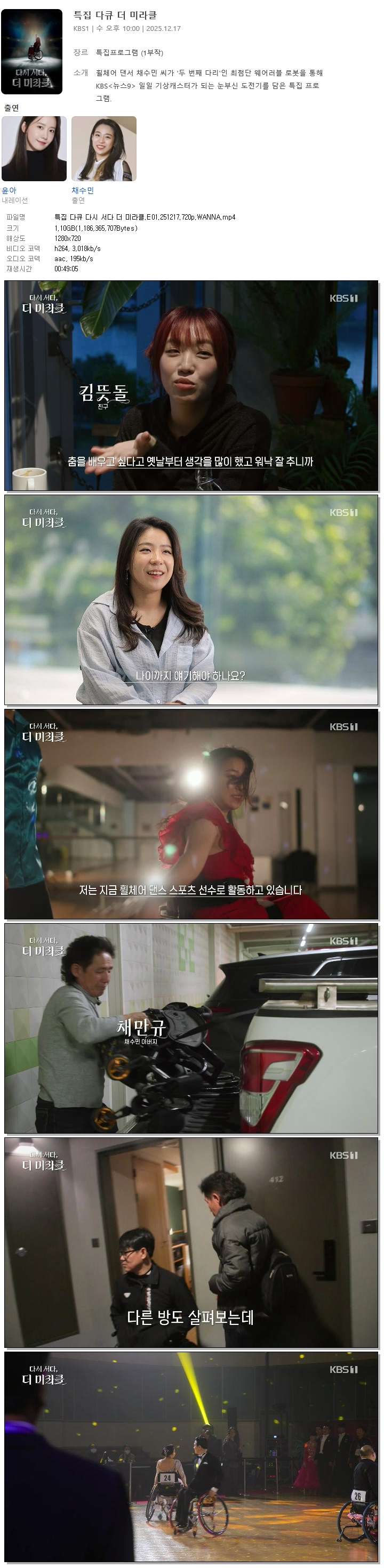 [KBS1] 특집 다큐 다시 서다 더 미라클.E01.251217.720p.WANNA.mp4 1.1 G 00:49:05 1280x720