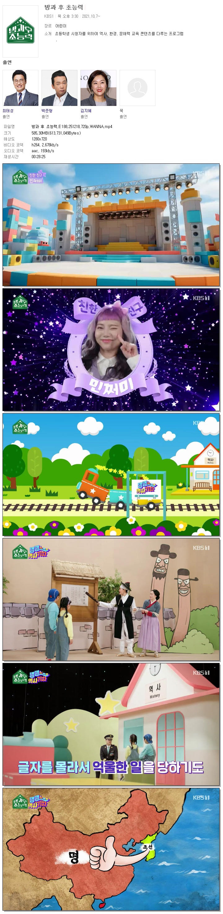 [KBS1] 방과 후 초능력.E188.251218.720p.WANNA.mp4 585.3 M 00:28:25 1280x720