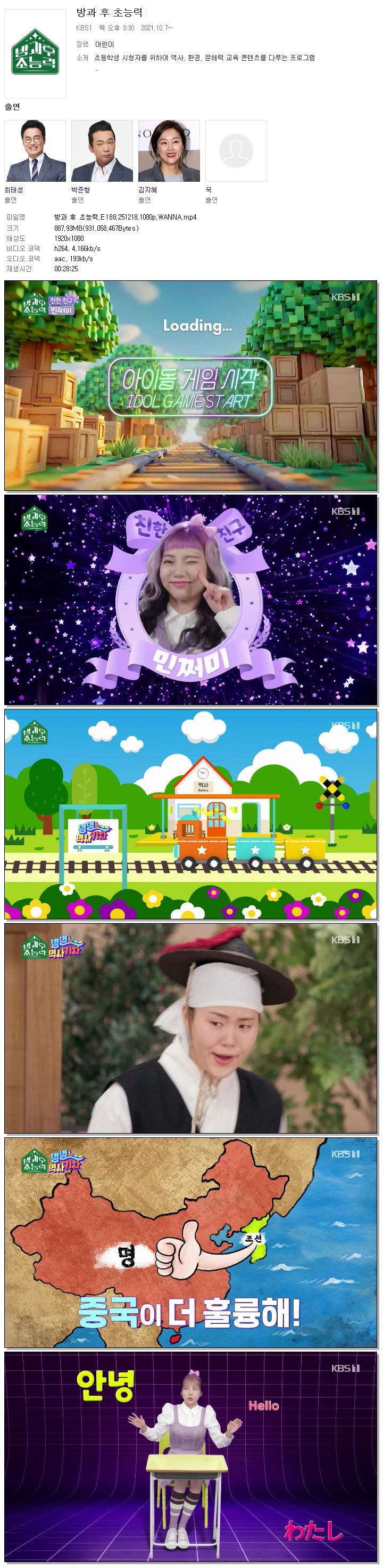 [KBS1] 방과 후 초능력.E188.251218.1080p.WANNA.mp4 887.9 M 00:28:25 1920x1080
