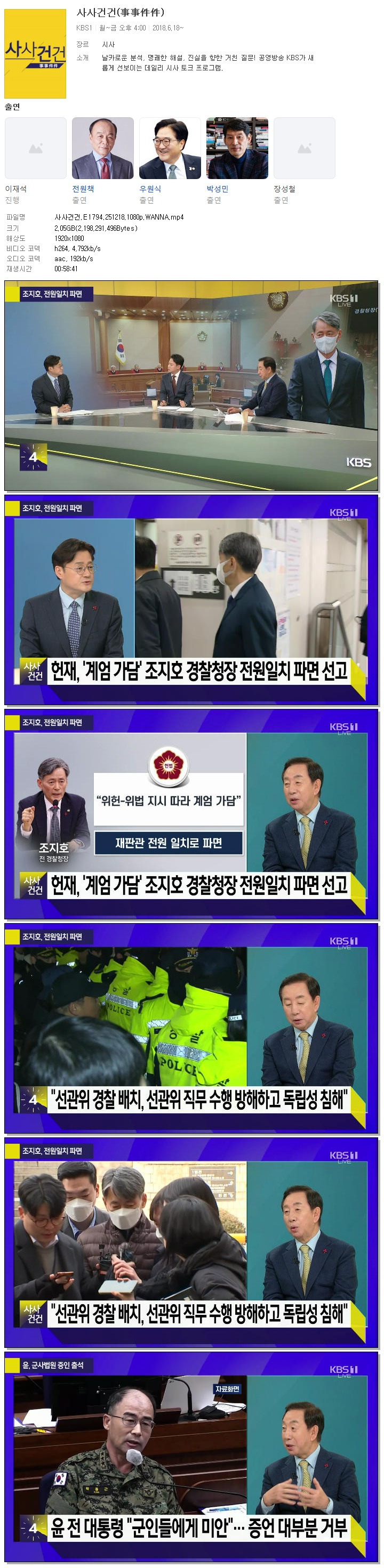 | [KBS1] 사사건건.E1794.251218.1080p.WANNA.mp4 | 2 G | 00:58:41 | 1920x1080 |