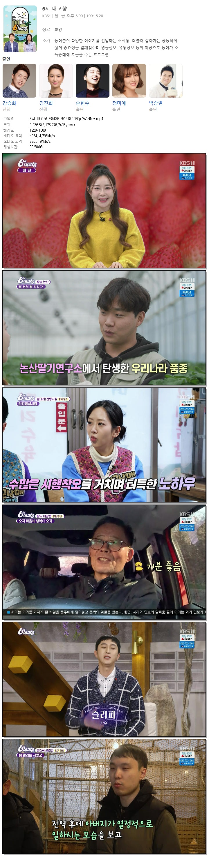 [KBS1] 6시 내고향.E8436.251218.1080p.WANNA[강승화, 김진희] 다시보기 토렌트