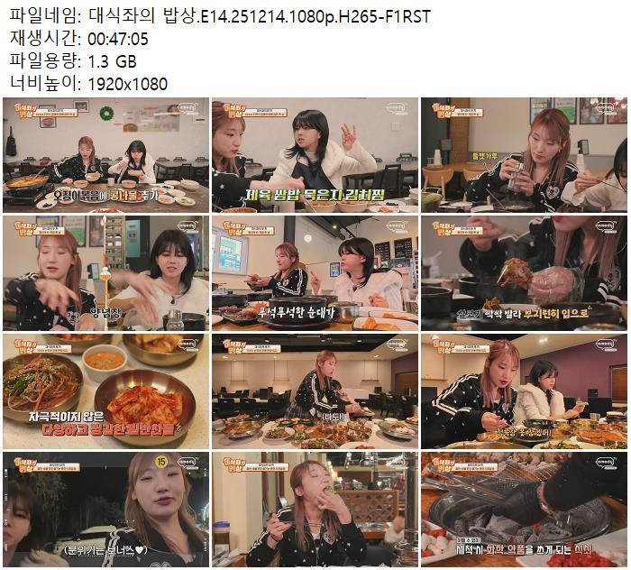 | 대식좌의 밥상.E14.251214.1080p.H265-F1RST.mp4 | 1.3 G | - | 1920x1080 |
