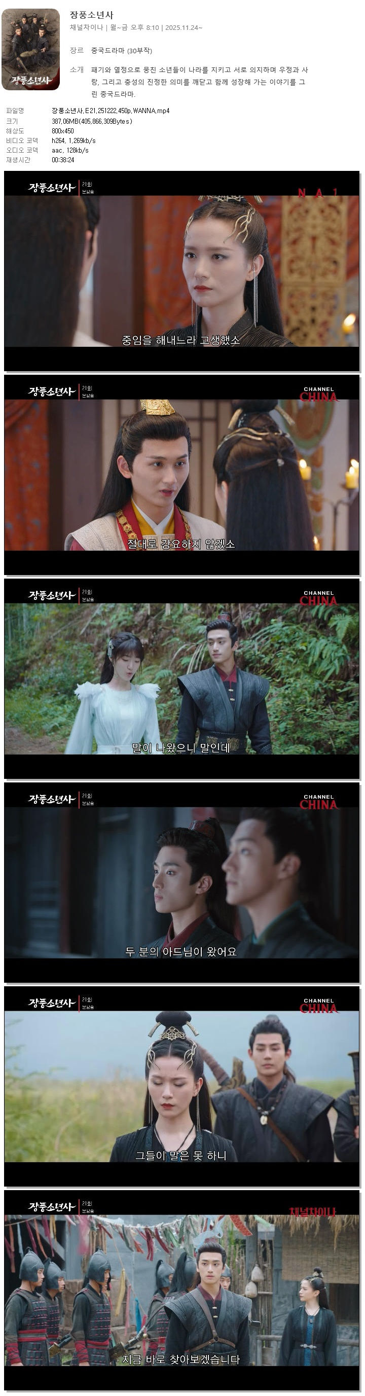 [채널차이나] 장풍소년사.E21.251222.450p.WANNA[이탁소, 장강락].mp4 387.1 M 00:38:24 800x450
