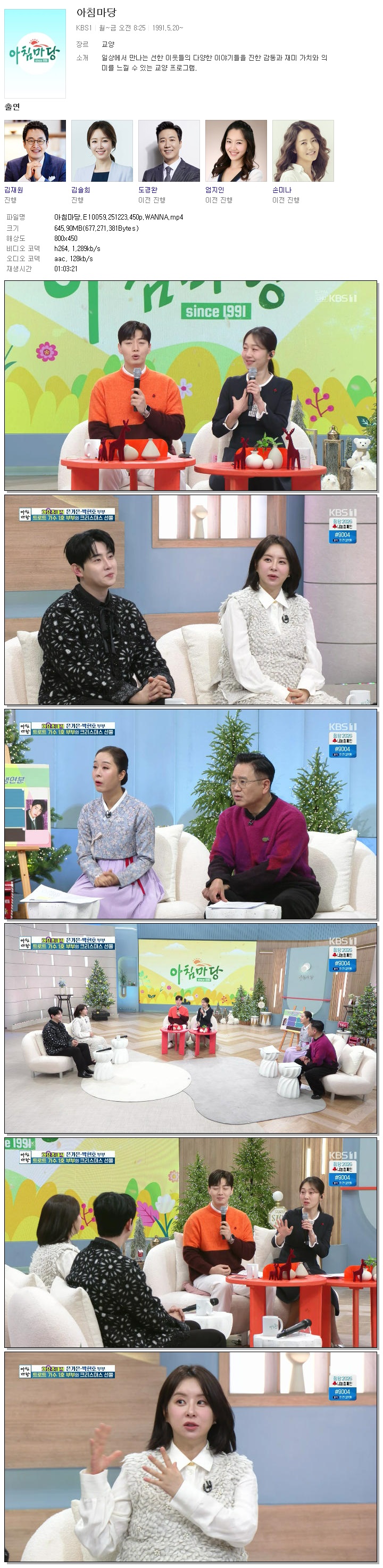 [KBS1] 아침마당.E10059.251223.450p.WANNA[엄지인, 박철규].mp4 645.9 M 01:03:21 800x450