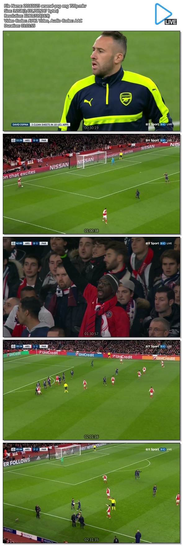 | 20161123 arsenal-psg eng 720p.mkv | 3.2 G | 03:01:55 | 1280x720 |