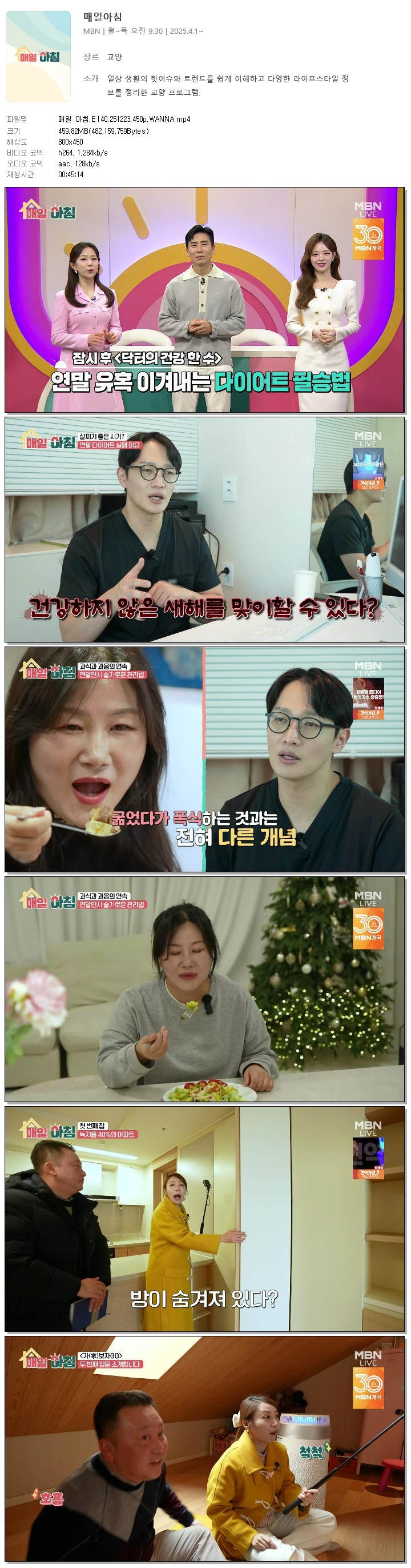 [MBN] 매일 아침.E140.251223.450p.WANNA[한혜원, 이정수] 다시보기 토렌트