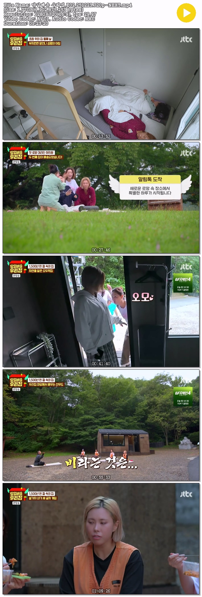 | 당일배송 우리집.E02.251223.720p-NEXT.mp4 | 1.8 G | 01:23:20 | 1280x720 |