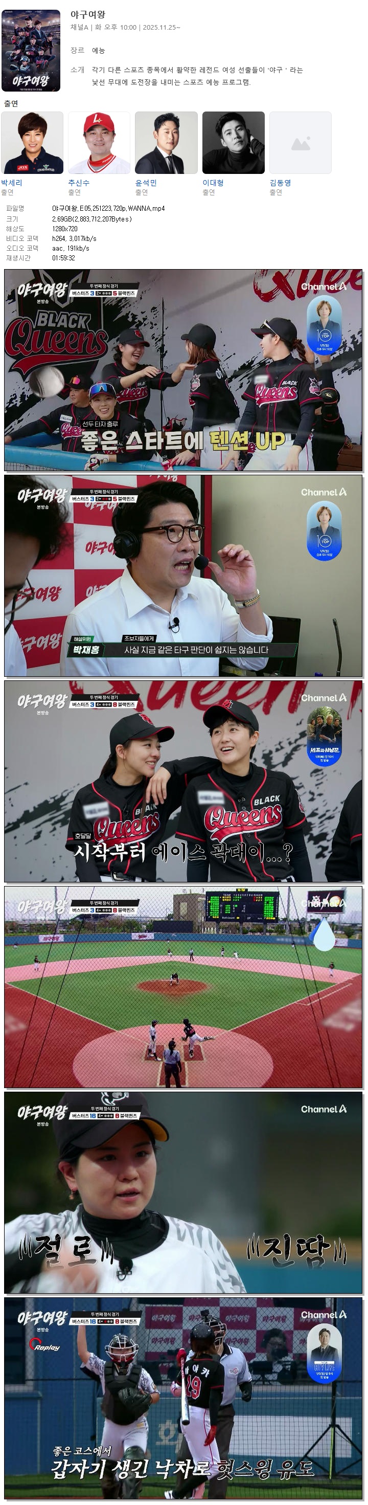 [채널A] 야구여왕.E05.251223.720p.WANNA[박세리, 추신수].mp4 2.7 G 01:59:32 1280x720