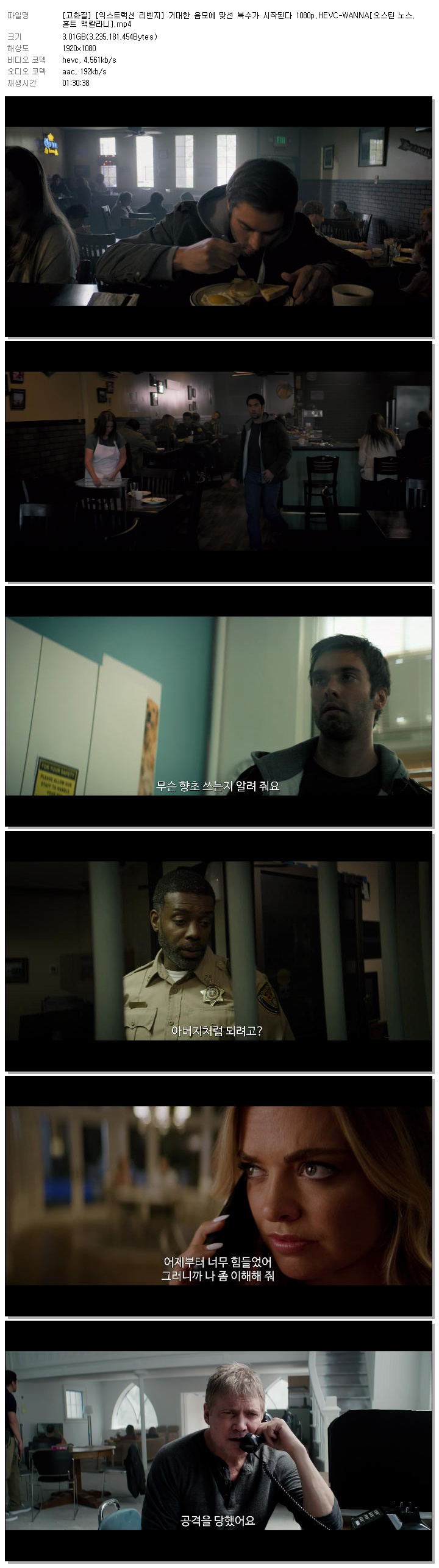 | [고화질] [익스트랙션 리벤지] 거대한 음모에 맞선 복수가 시작된다 1080p.HEVC-WANNA[오스틴 노스, 홀트 맥칼라니].mp4 | 3 G | 01:30:38 | 1920x1080 |