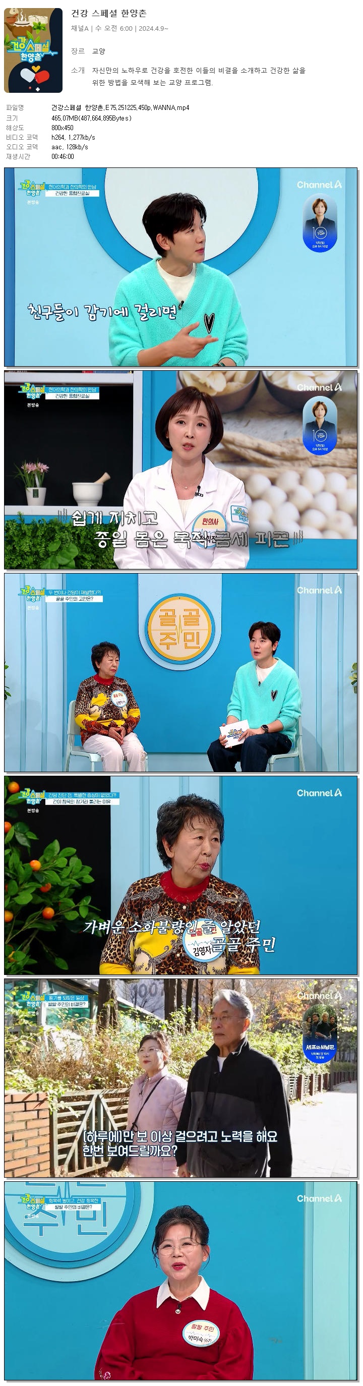 [채널A] 건강스페셜 한양촌.E75.251225.450p.WANNA[김정근].mp4 465.1 M 00:46:00 800x450