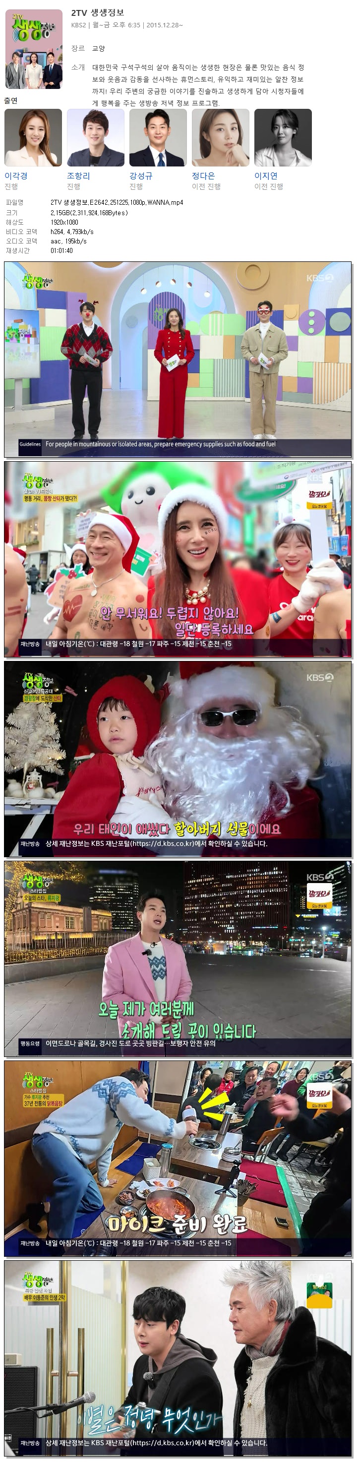 [KBS2] 2TV 생생정보.E2642.251225.1080p.WANNA[이각경, 조항리].mp4 2.2 G 01:01:40 1920x1080