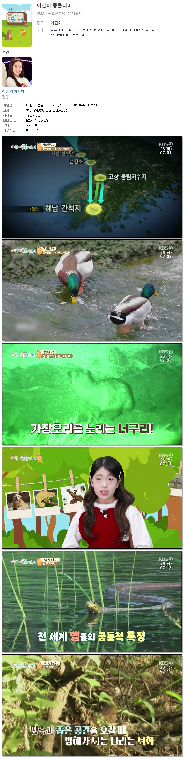 [KBS2] 어린이 동물티비.E204.251226.1080p.WANNA[캠벨 에이시아] 다시보기 토렌트