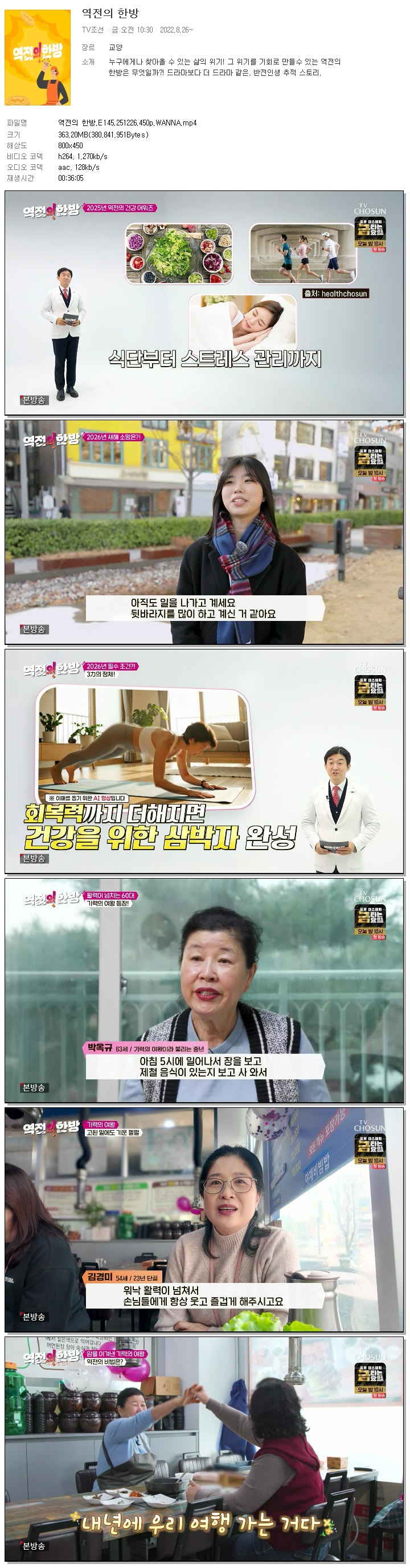 [TV조선] 역전의 한방.E145.251226.450p.WANNA.mp4 363.2 M 00:36:05 800x450