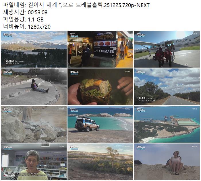 | 걸어서 세계속으로 트래블홀릭.251225.720p-NEXT.mp4 | 1.1 G | - | 1280x720 |