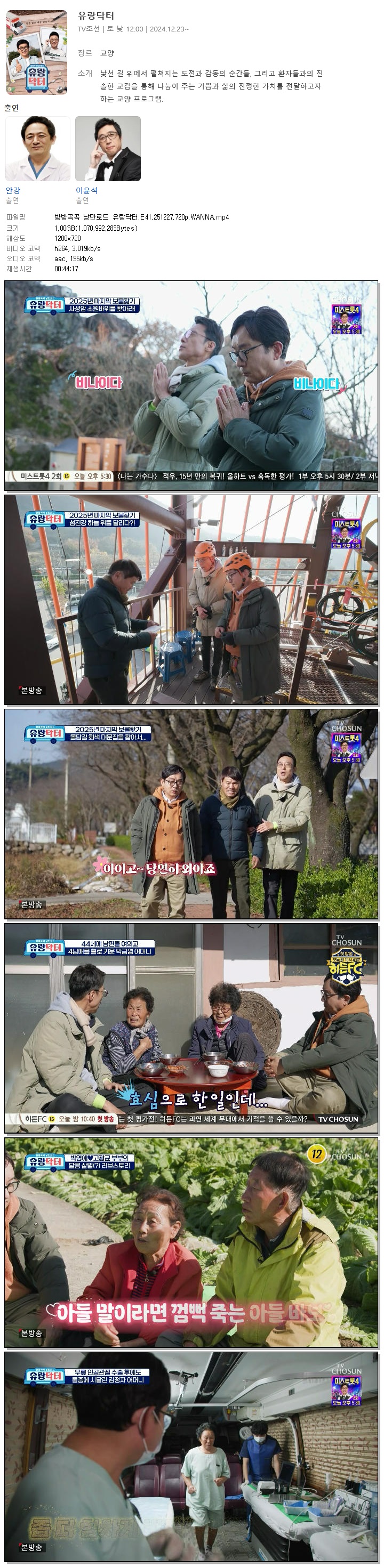[TV조선] 방방곡곡 낭만로드 유랑닥터.E41.251227.720p.WANNA[안강, 이윤석] 다시보기 토렌트