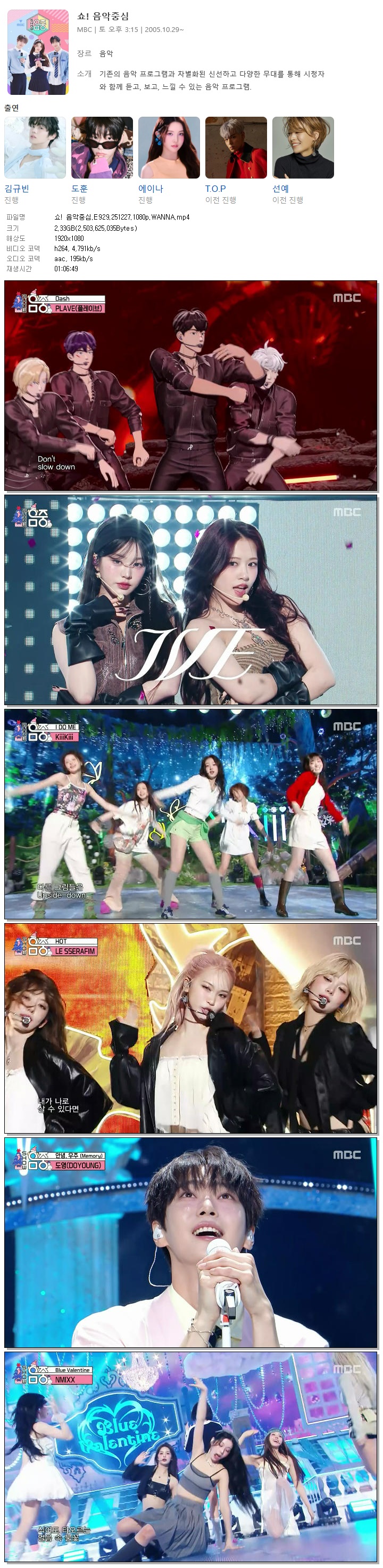 [MBC] 쇼! 음악중심.E929.251227.1080p.WANNA[세븐틴, 강다니엘] 다시보기 토렌트