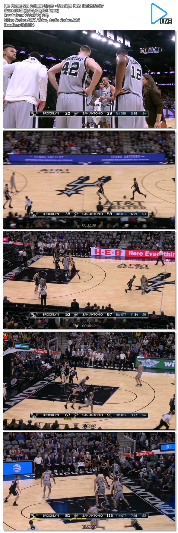 | San Antonio Spurs - Brooklyn Nets 10.12.16.mkv | 2 G | 01:36:24 | 1280x720 |