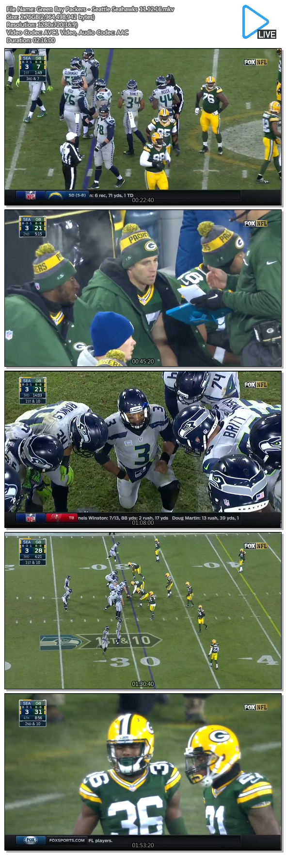 Green Bay Packers - Seattle Seahawks 11.12.16.mkv 2.8 G 02:16:00 1280x720