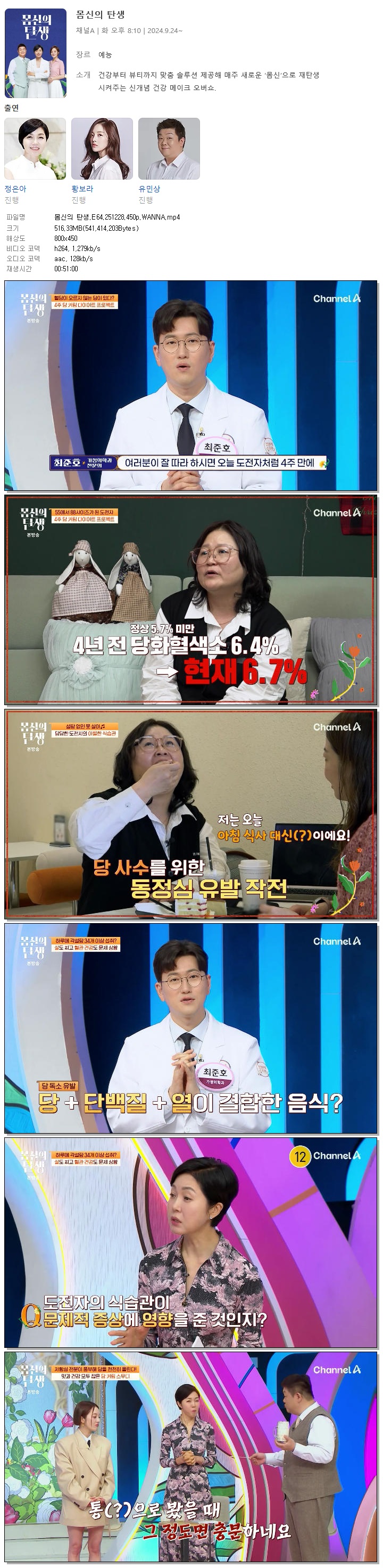 [채널A] 몸신의 탄생.E64.251228.450p.WANNA[황보라, 유민상].mp4 516.3 M 00:51:00 800x450