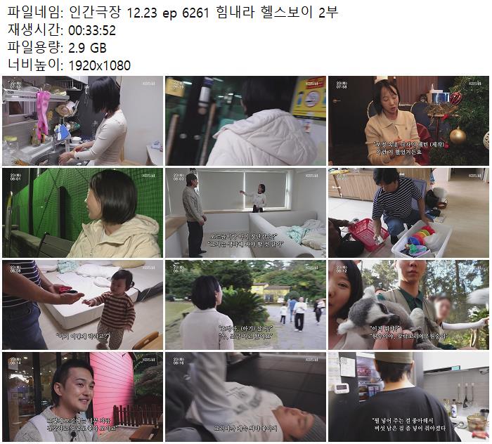 | 인간극장 12.23 ep 6261 힘내라 헬스보이 2부.mp4 | 2.9 G | - | 1920x1080 |