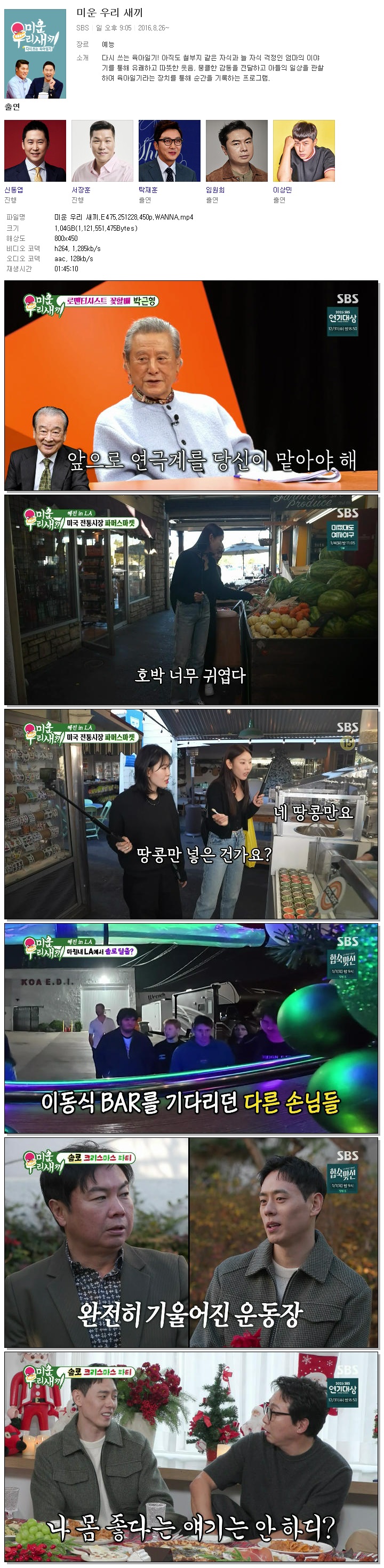 [SBS] 미운 우리 새끼.E475.251228.450p.WANNA[박근형, 한혜진].mp4 1 G 01:45:10 800x450