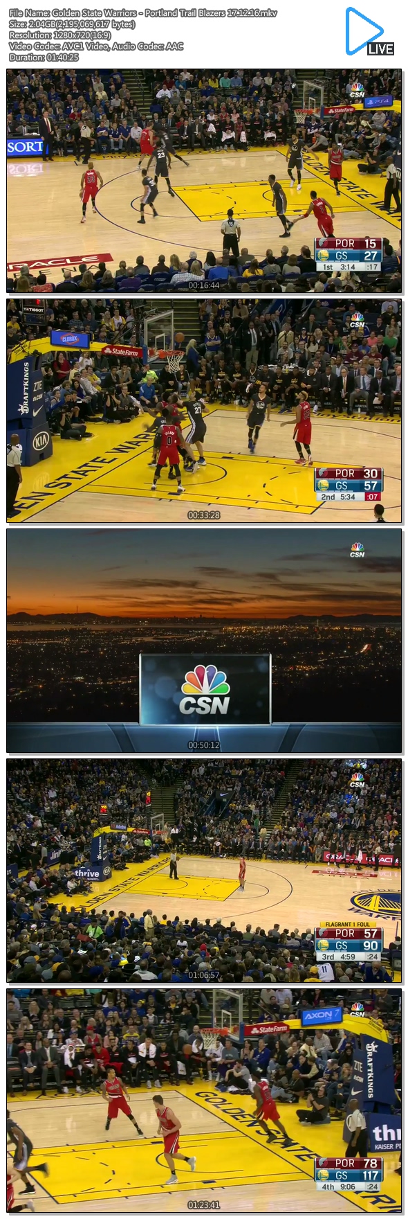 | Golden State Warriors - Portland Trail Blazers 17.12.16.mkv | 2 G | 01:40:25 | 1280x720 |