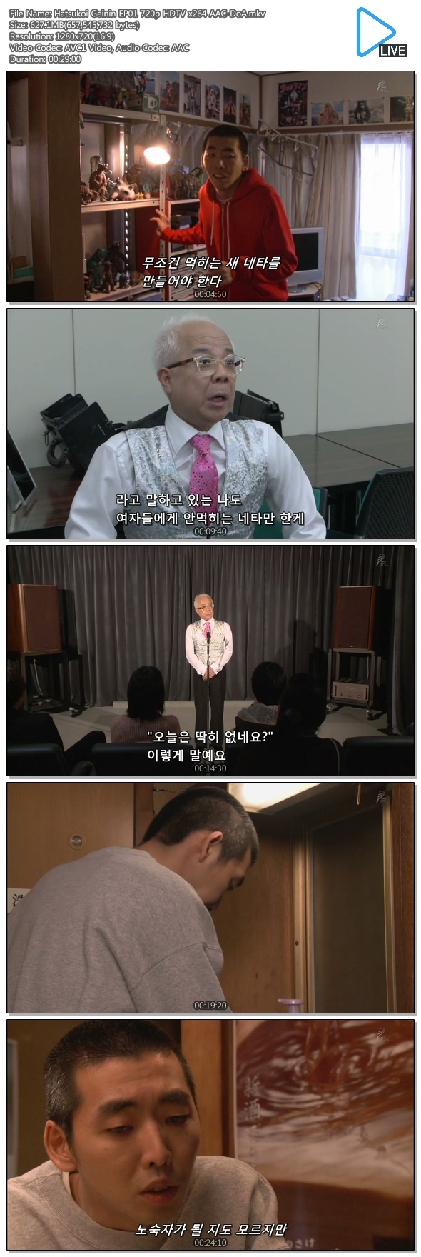 | Hatsukoi Geinin EP01 720p HDTV x264 AAC-DoA.mkv | 627.1 M | 00:29:00 | 1280x720 |
