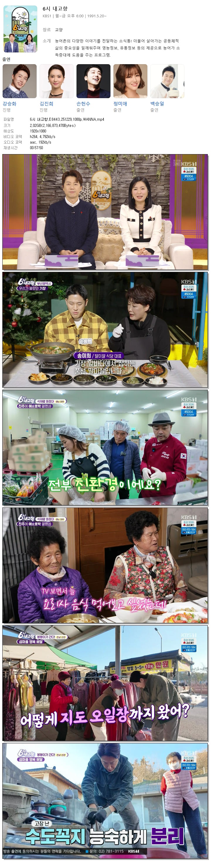| [KBS1] 6시 내고향.E8443.251229.1080p.WANNA[강승화, 김진희].mp4 | 2 G | 00:57:50 | 1920x1080 |