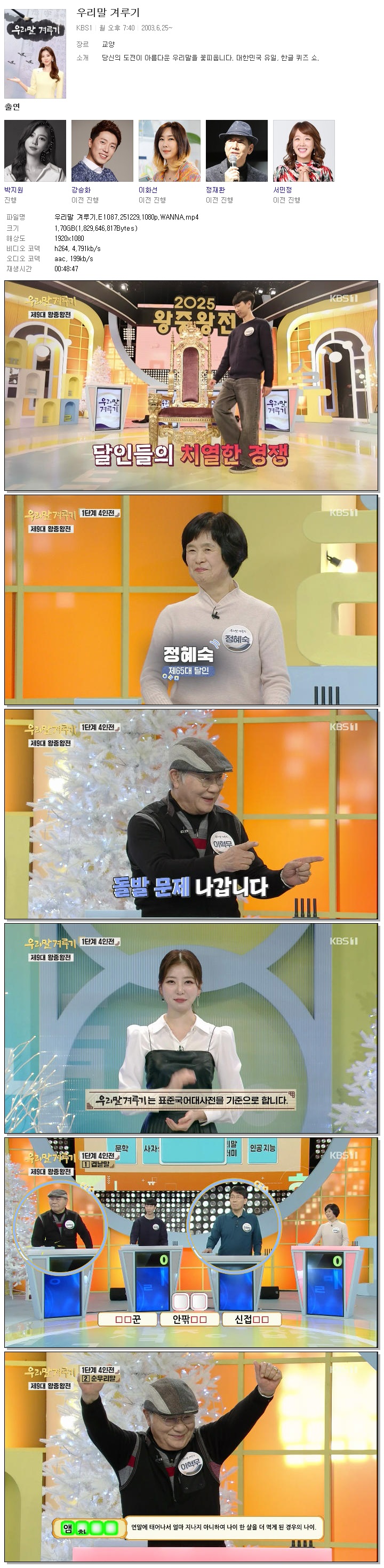 [KBS1] 우리말 겨루기.E1087.251229.1080p.WANNA[박지원] 다시보기 토렌트
