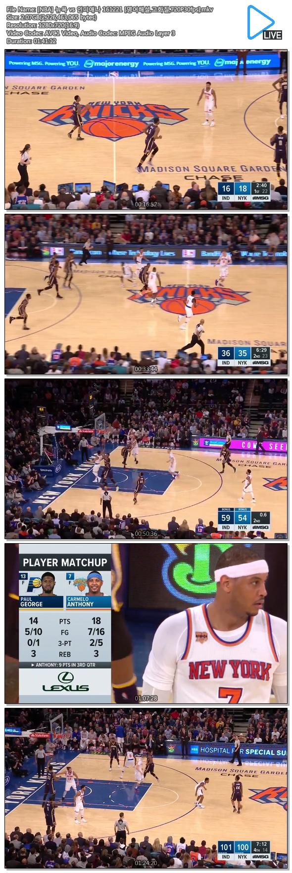 ico[NBA] 뉴욕 vs 인디애나 161221 [영어해설,고화질]/