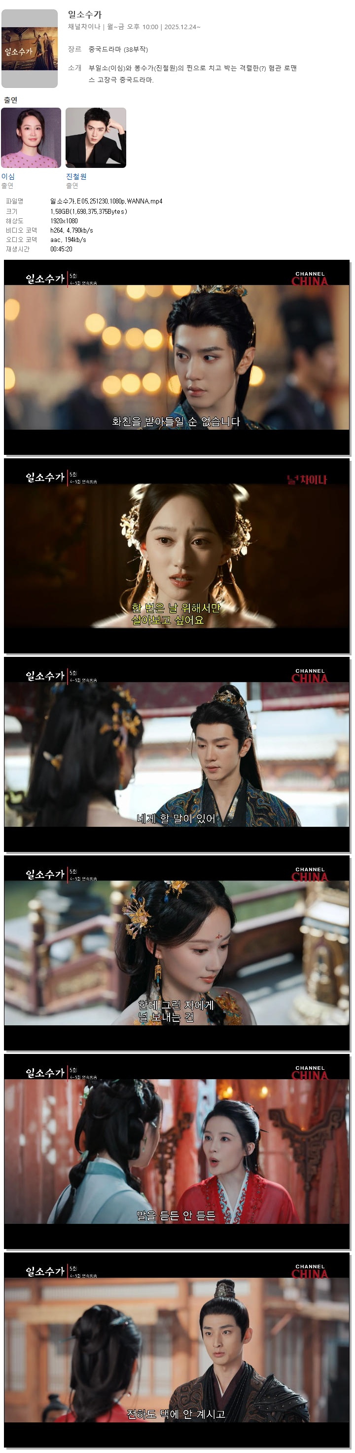 [채널차이나] 일소수가.E05.251230.1080p.WANNA[이심, 진철원] 다시보기 토렌트