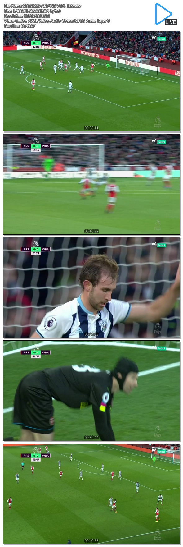 | 20161226-ARS-WBA-EPL_2ES.mkv | 1.5 G | 00:50:06 | 1280x720 |