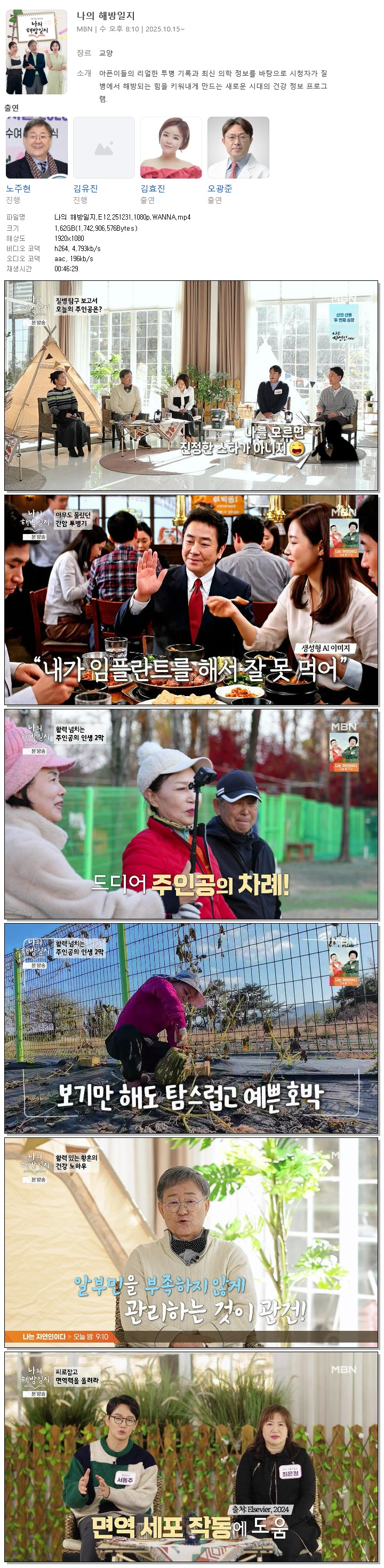 | [MBN] 나의 해방일지.E12.251231.1080p.WANNA[노주현, 김효진].mp4 | 1.6 G | 00:46:29 | 1920x1080 |