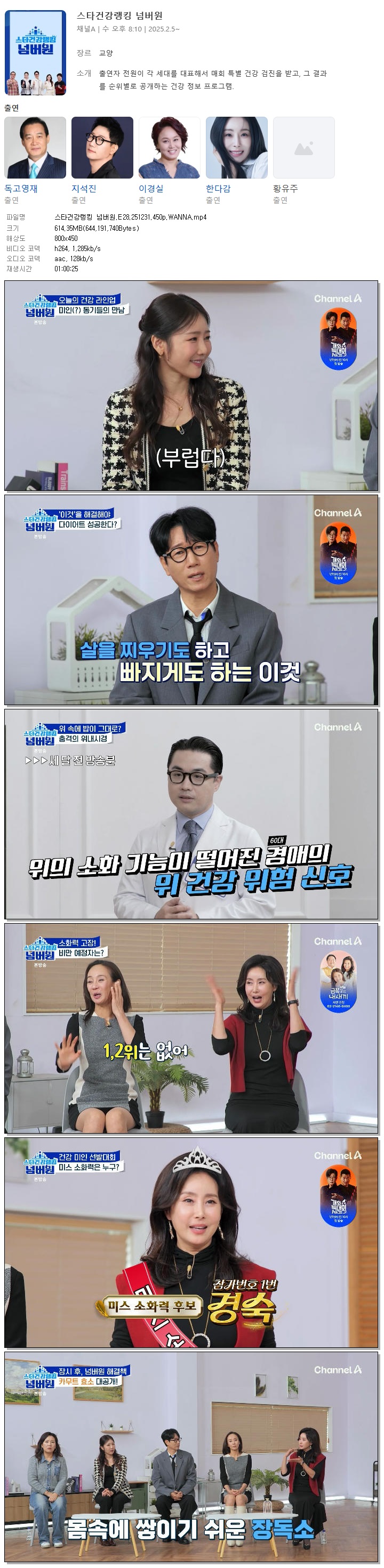 | [채널A] 스타건강랭킹 넘버원.E28.251231.450p.WANNA[지석진, 이세창].mp4 | 614.3 M | 01:00:25 | 800x450 |