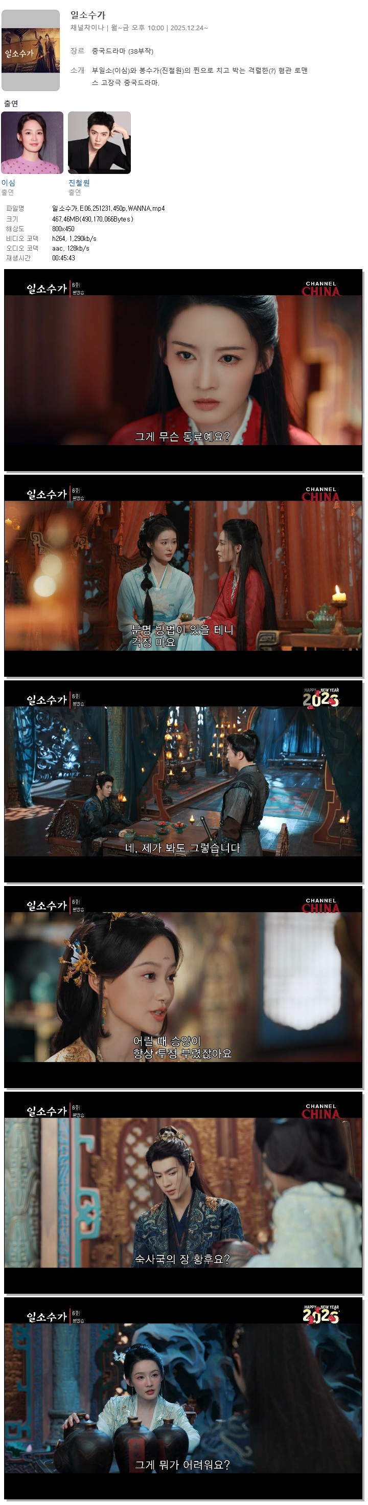 [채널차이나] 일소수가.E06.251231.450p.WANNA[이심, 진철원] 다시보기 토렌트