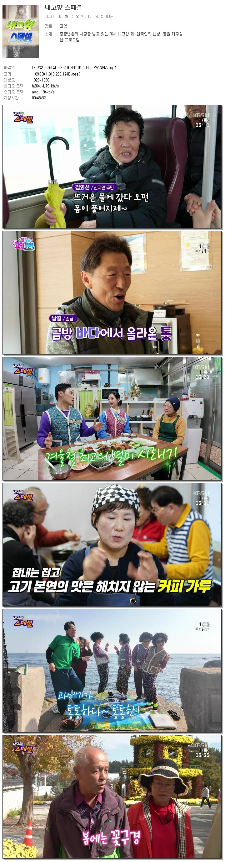 | [KBS1] 내고향 스페셜.E2819.260101.1080p.WANNA.mp4 | 1.7 G | 00:48:32 | 1920x1080 |