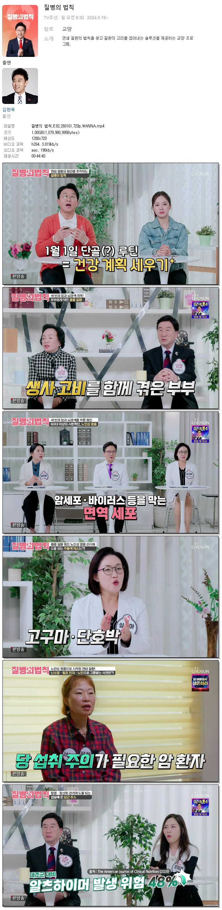 [TV조선] 질병의 법칙.E82.260101.720p.WANNA[김현욱].mp4 1 G 00:44:40 1280x720