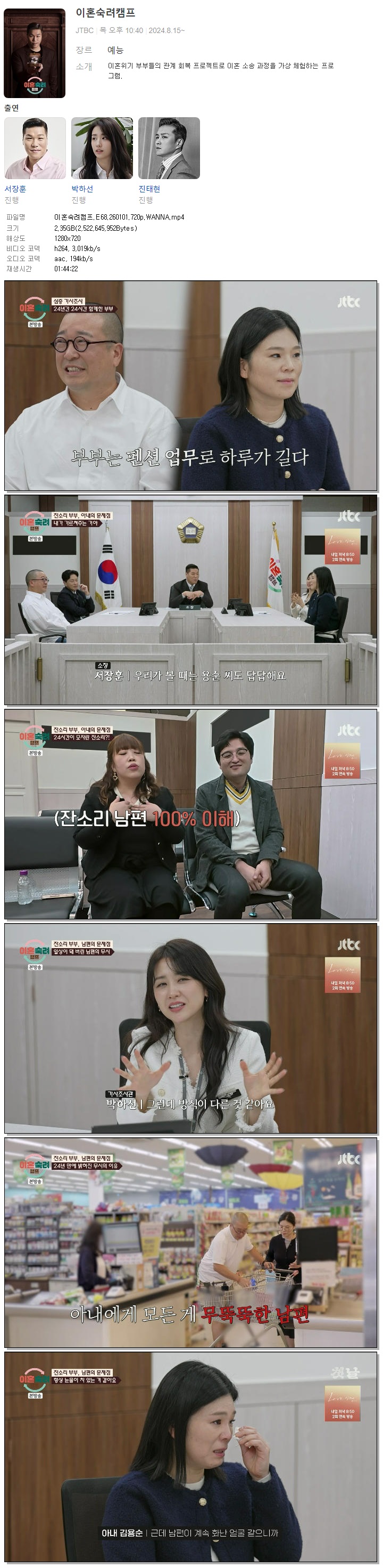 [JTBC] 이혼숙려캠프.E68.260101.720p.WANNA[서장훈, 박하선] 다시보기 토렌트