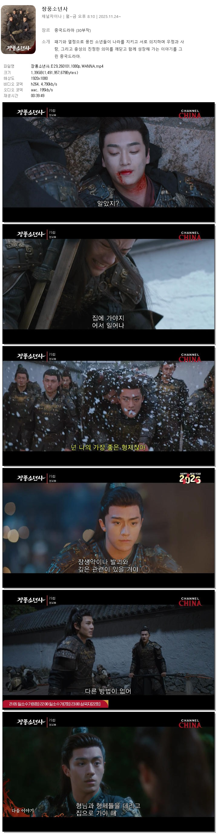 [채널차이나] 장풍소년사.E29.260101.1080p.WANNA[이탁소, 장강락].mp4 1.4 G 00:39:49 1920x1080
