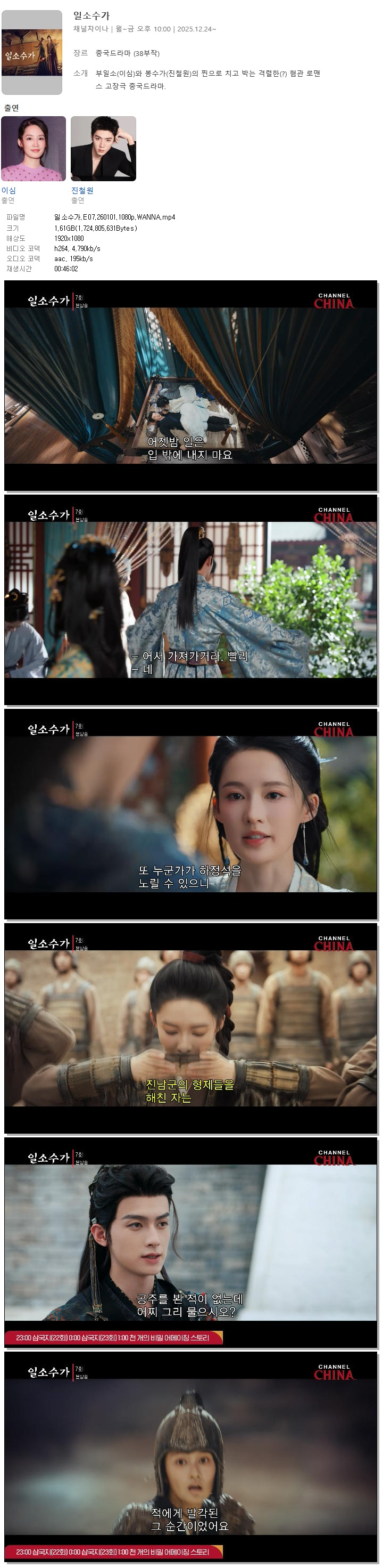 [채널차이나] 일소수가.E07.260101.1080p.WANNA[이심, 진철원] 다시보기 토렌트