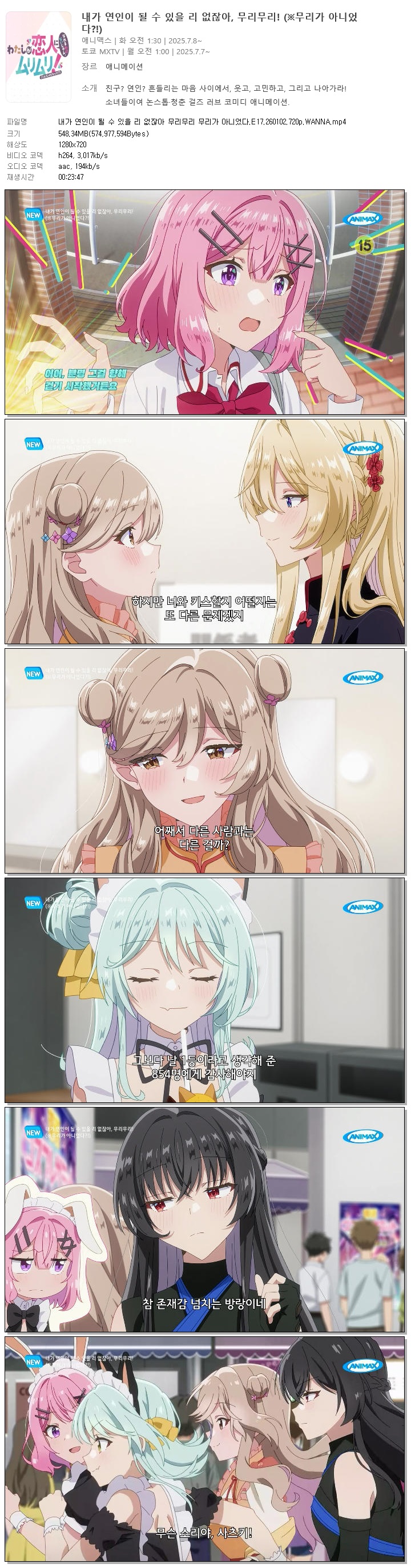 | 내가 연인이 될 수 있을 리 없잖아 무리무리 무리가 아니었다.E17.260102.720p.WANNA.mp4 | 548.3 M | 00:23:47 | 1280x720 |