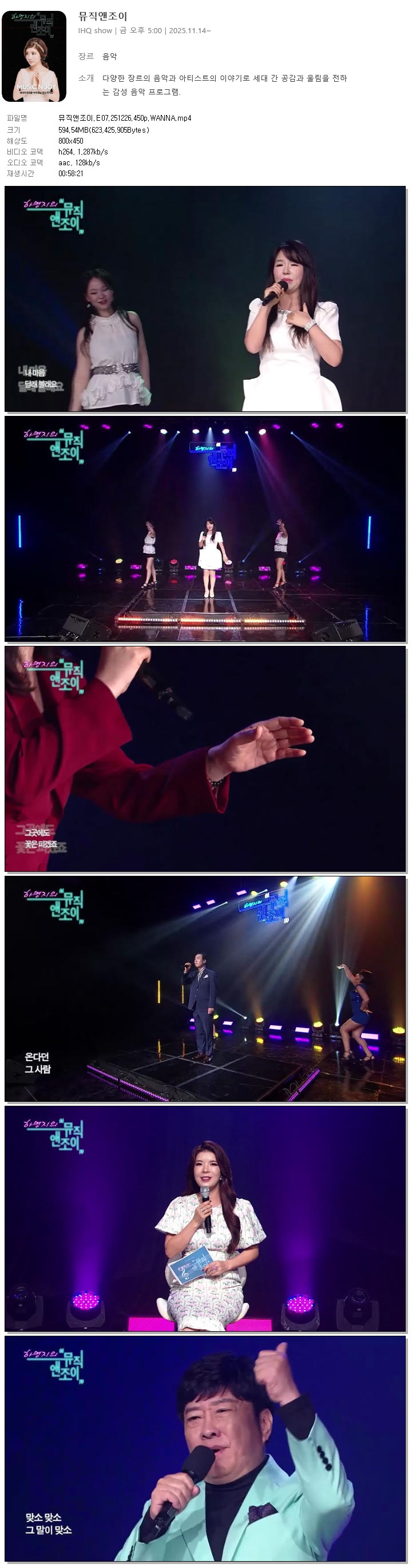 | [i SHOW] 뮤직앤조이.E07.251226.450p.WANNA[하명지].mp4 | 594.5 M | 00:58:21 | 800x450 |