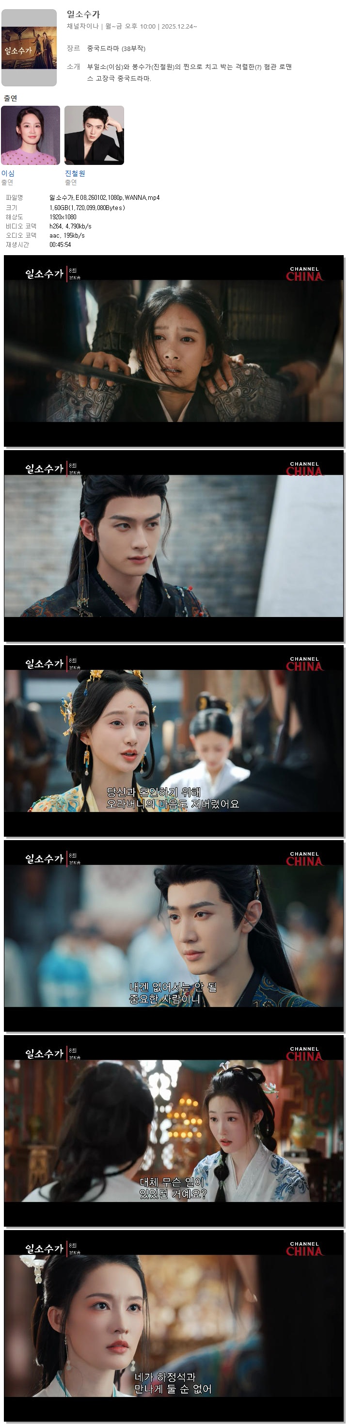 [채널차이나] 일소수가.E08.260102.1080p.WANNA[이심, 진철원] 다시보기 토렌트