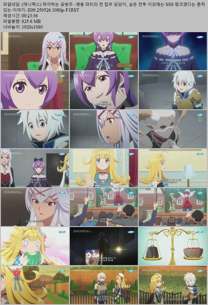 | (애니맥스) 착각하는 공방주 -영웅 파티의 전 잡무 담당이, 실은 전투 이외에는 SSS 랭크였다는 흔히 있는 이야기-.E09.250526.1080p-F1RST.mp4 | 825.6 M | - | 1920x1080 |