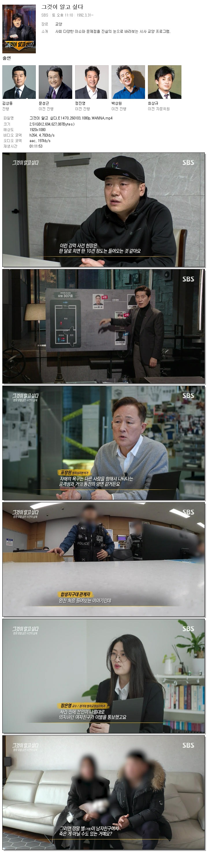[SBS] 그것이 알고 싶다.E1470.260103.1080p.WANNA[김상중].mp4 2.5 G 01:11:53 1920x1080