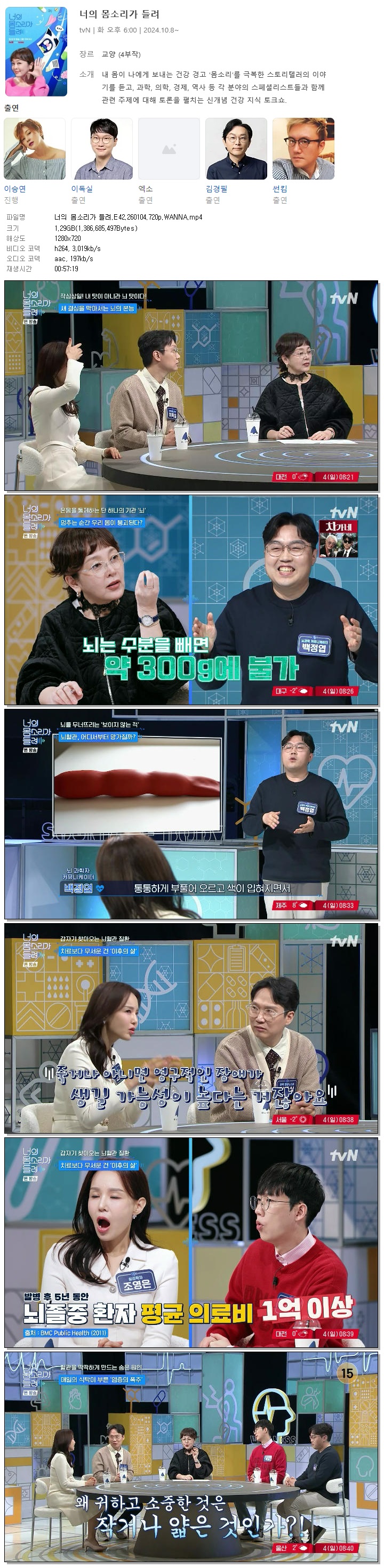 [TVN] 너의 몸소리가 들려.E42.260104.720p.WANNA[이승연, 이독실].mp4 1.3 G 00:57:19 1280x720