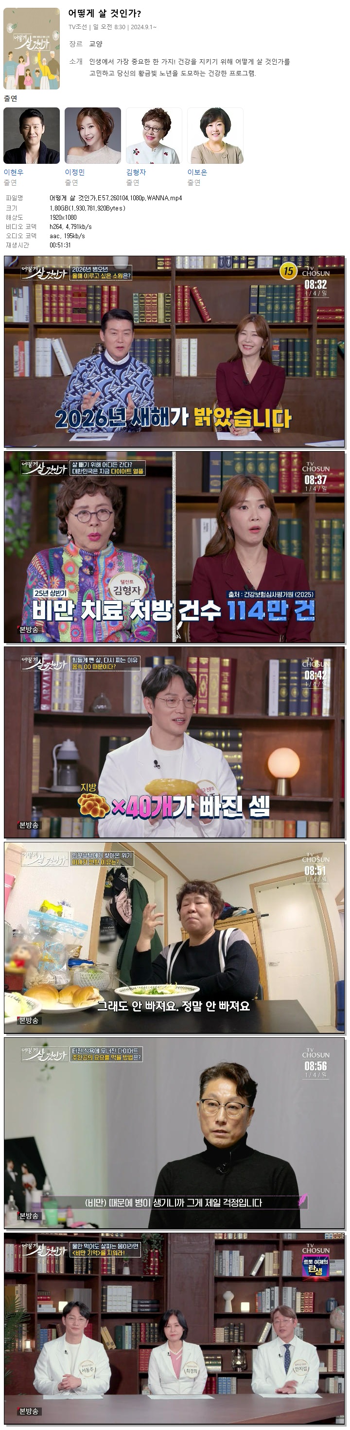 [TV조선] 어떻게 살 것인가.E57.260104.1080p.WANNA[이현우, 이정민] 다시보기 토렌트