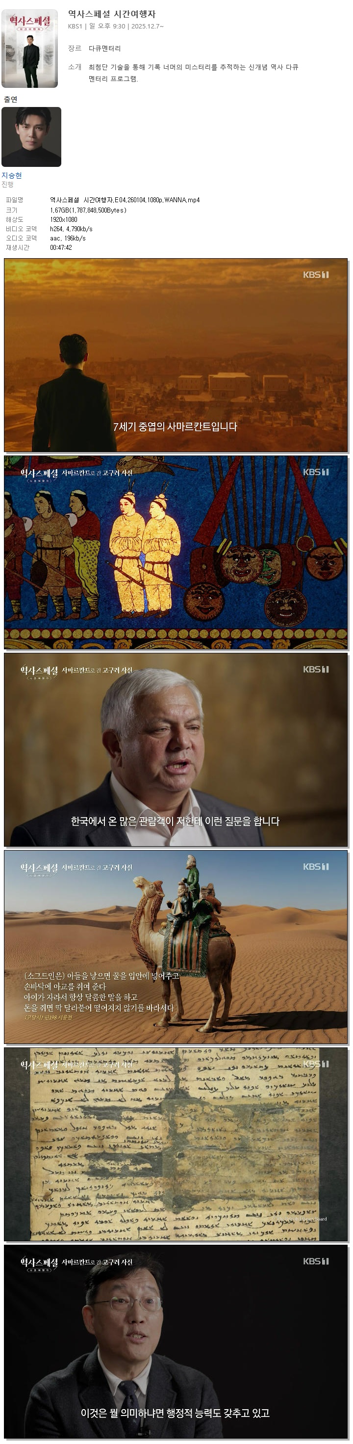 | [KBS1] 역사스페셜 시간여행자.E04.260104.1080p.WANNA[지승현].mp4 | 1.7 G | 00:47:42 | 1920x1080 |